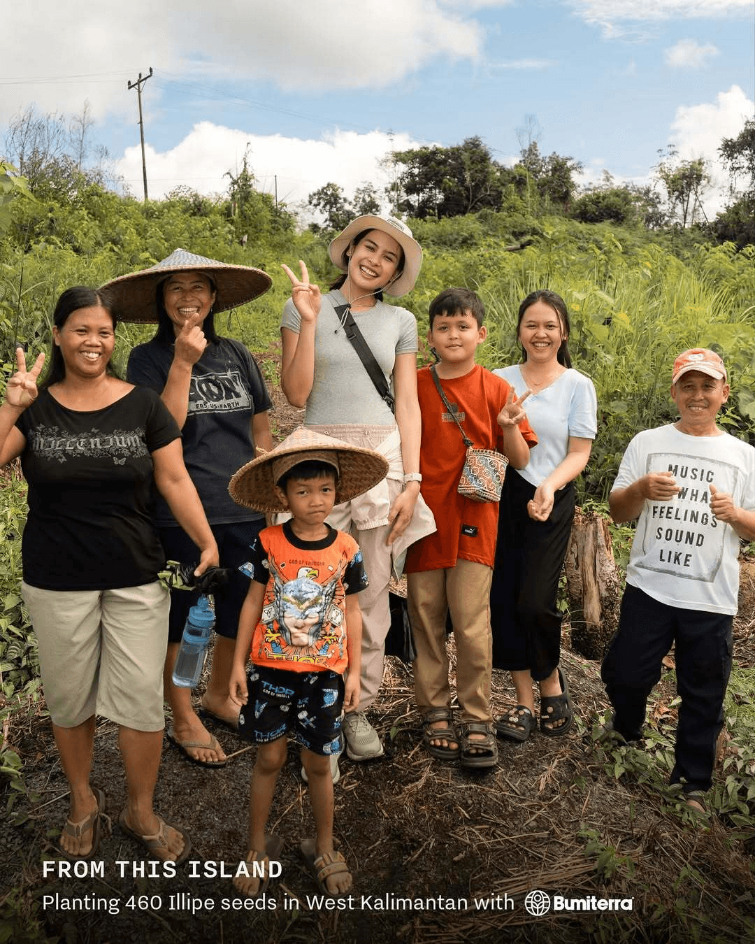 The CEO and Co-Founder of From This Island, Maudy Ayunda, took documentation with local Community Keepers and their families during her visit to Bumiterra’s reforestation site.